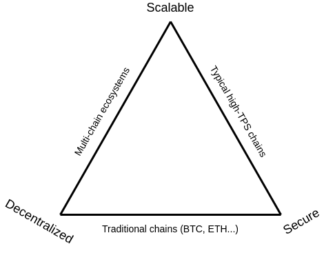This makes for a highly inefficient system that discourages usage and drives new users back to traditional finance or to other ecosystems. Currently, ETH can do roughly 15 transactions per second (TPS), a far cry from traditional finance players like Visa (50k+ TPS). At the heart of it, all Layer 1 networks suffer from the blockchain trilemma: choosing between decentralization, security, and scalability.