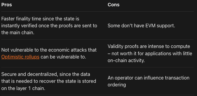 Zero-knowledge (ZK) rollups will “rollup” hundreds of transactions and run the computation off-chain. The key difference being, zk-rollups submit a validity proof to the Mainnet. These proofs can be SNARKs or STARKs. Each proof has its pros and cons, though discussion of that is beyond the scope of this paper. As zk-rollup smart contracts maintain the state of all transfers, the zk-rollups only need the validity proof rather than the entire transaction data, making validation of blocks quicker and cheaper.