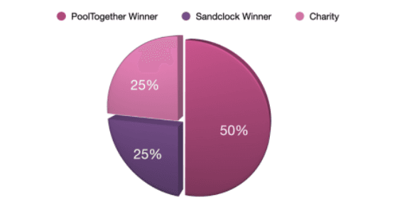 To further incentivize donations, Sandclock has partnered with PoolTogether to create quarterly raffles. Tickets to these raffles are rewarded to donors for every dollar donated through Sandclock’s platform. Every quarter, 50% of the proceeds accumulated by PoolTogethers raffle go to the winner of the pool, 25% go to a charity foundation decided by PoolTogether, and the other 25% goes to the winner of Sandclock’s raffle.