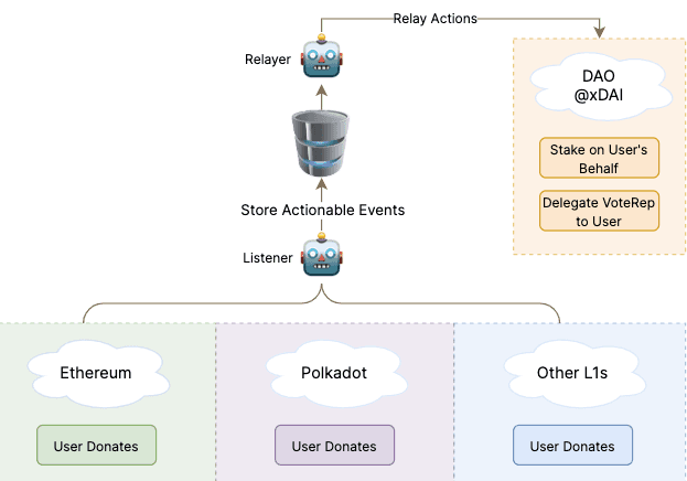 Cross-chain relayers support directing yield, giving depositors the ability to direct yield to any chain. This opens up a myriad of different use-cases, limited only by the imagination of the users. You could theoretically: