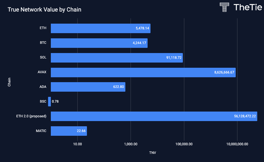 True Network Value holistically demonstrates a chain’s performance by taking into account block size, time-to-finality, and validator count. This metric is still a work in progress, as there are a some factors it lacks. TNV does not account for geographical distribution of validators. This aspect is quite key to determining the level of decentralization. A potential solution could be to replace the number of validators with the Nakamoto coefficient, giving us a true quantification of a network’s degree of decentralization. We would also like to further explore the relationship between throughput and stale or “uncle” blocks and what it means for network security. The TNV metric seeks to redefine how throughput is valued and thought about. The TNV metric seeks to remedy the shortcomings of TPS by providing a comprehensive view of a system’s ability to conduct value transference. Given the data reflected by the TNV model, Avalanche and Ethereum (post-merge) are best poised to accelerate strongest into the next bull market.