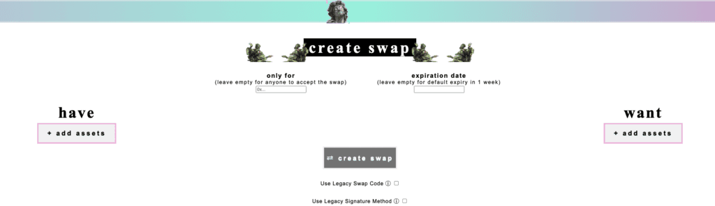 A non-custodial backend means that Makers pay no gas to list - only sign a transaction. Takers pay a fee to execute the swap, which is at equal to, if not cheaper than, swapping on another major NFT exchange. NFTs can be exchanged for ETH, like other platforms, or swapped into any combination of a variety of ERC tokens.