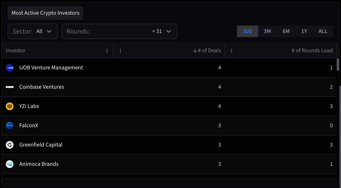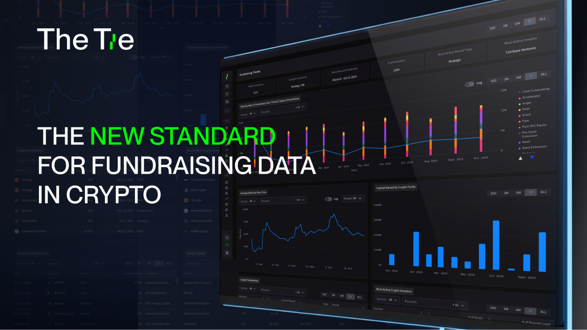 Over the past year, The Tie built its proprietary fundraising dataset entirely in-house: verifying every company, every investor, and every round. The result is the most comprehensive view of fundraising activity across the crypto ecosystem, now live across The Tie Terminal.
